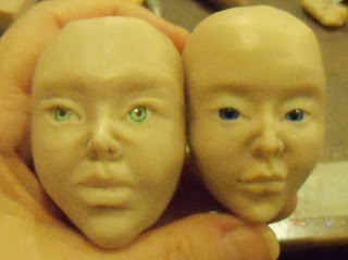 I have started new practice rounds on the Beginning Polymer Clay Sculpture Group. I love this group. I have learned so much about sculpting from all of these wonderful ladies. I hope I am getting better at this part. Anyway one of the members is going to teach a costuming project, so I am really excited about and I have posted photos of the head I am working on...before and after the critique from Judy and Janet, who are so nice and have taught me so much. If any of you are interested in learning to sculpt in polymer clay I suggest joining this group.This one is after the critique. I am going to post another one I did with green eyes that I made myself. They are flat and I just put them in to show a lady on the group that you need not have expensive eyes to sculpt.